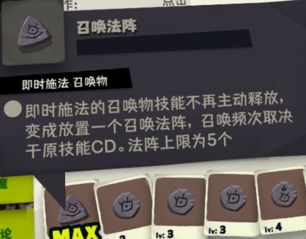 1.1武器-召唤物上限。感觉有15个召唤物基本就够,正好5个召唤法阵,天赋+1召唤物,武器附魔+1召唤物,一个法阵能召唤3个,5个一次性召唤15个。