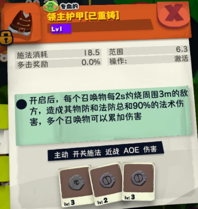 2.2 衣服=领主护甲:每2s灼烧周围。我上了一个毒符文,增加持续伤害。