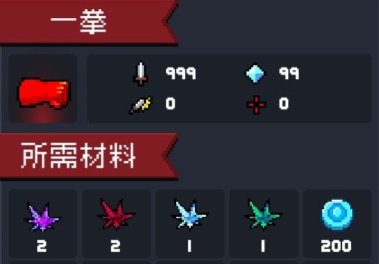 一拳[红]暴击率虽然为0但属于可暴击武器,也受攻速因子影响。〖攻速加倍,攻击减半〗〖攻速减半,攻击加倍〗因子会大幅影响一拳伤害。因此一拳[红]极限伤害搭配为:刺客三+攻速减半+暴伤翻倍。