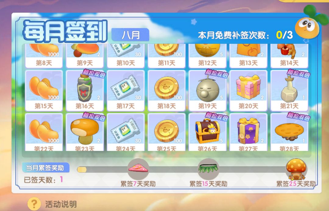 我来和你们分析一下这个八月签到奖励的内容,图片的重要部分放上。