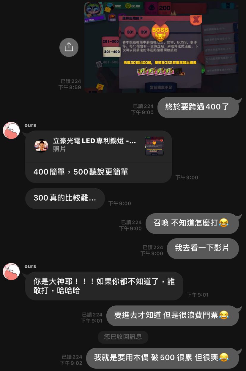 大家好,我是「廈門台藝建豪-台灣立豪光電 。家豪」,本來只是休閒玩遊戲,並無打算發攻略,所以當初爬樓以及300王、400王,很可惜沒有留下影片,還有抓回一些對話紀錄,會放在放文章後。