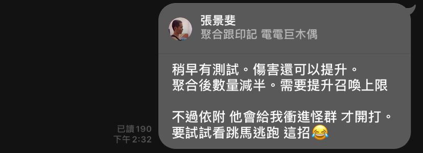 這條路還很漫長,但我會一步一腳印,朝著心中的理想型「依附聚合大範圍印記爆擊電木偶」邁進。