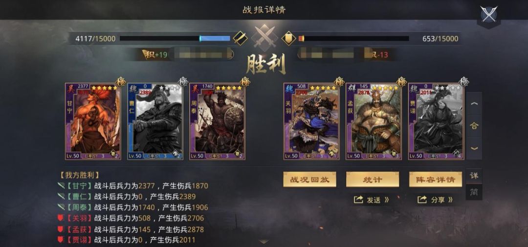 【临兵列阵】已上线两周,在很多主公的战斗中,涌现了很多精彩有趣的战报,这里挑选了一部分来与大家分享一下。
