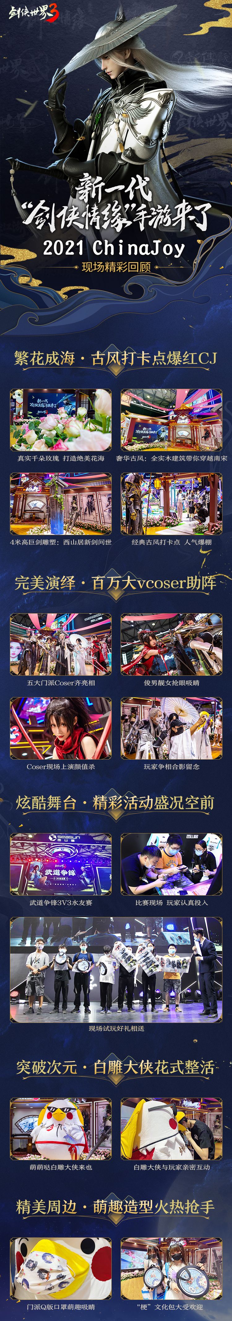 有鲜花环绕、高颜值Coser齐聚养眼的视觉盛宴,也有侠情万分、国风韵味十足的江湖气息,《剑侠世界3》精彩万分的CJ之旅在今日就将圆满结束啦!