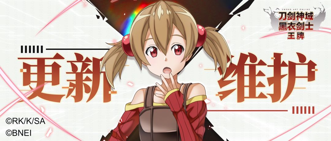 感谢您对《刀剑神域黑衣剑士:王牌》的支持!我们将于2021年8月3日10:00起对全服进行预计为期3小时的停机维护更新,预计开服时间为13:00。实际开服时间不排除提前或延后的可能,如若延迟开服我们会第一时间公布消息,敬请留意后续公告。