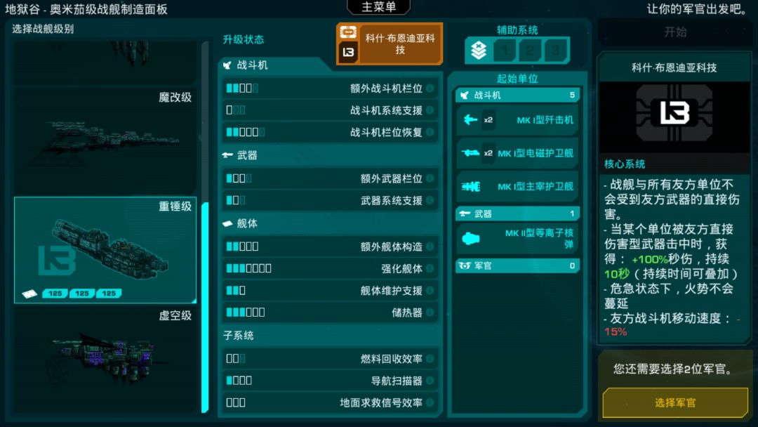 劣势也是如此,战斗机血少,虽然雄鼠的被动足以战胜战斗机克制,但仅限低等级,所以并不适宜第三章对战魔改级,第二章也不推荐使用,因为其血低,害怕AOE武器。所以推荐在高难度或第三节买掉野蛮布阵。第二,系统支援只有一个栏位,所以不要浪费废金属买军官了。第三,导航不好使,但问题不大