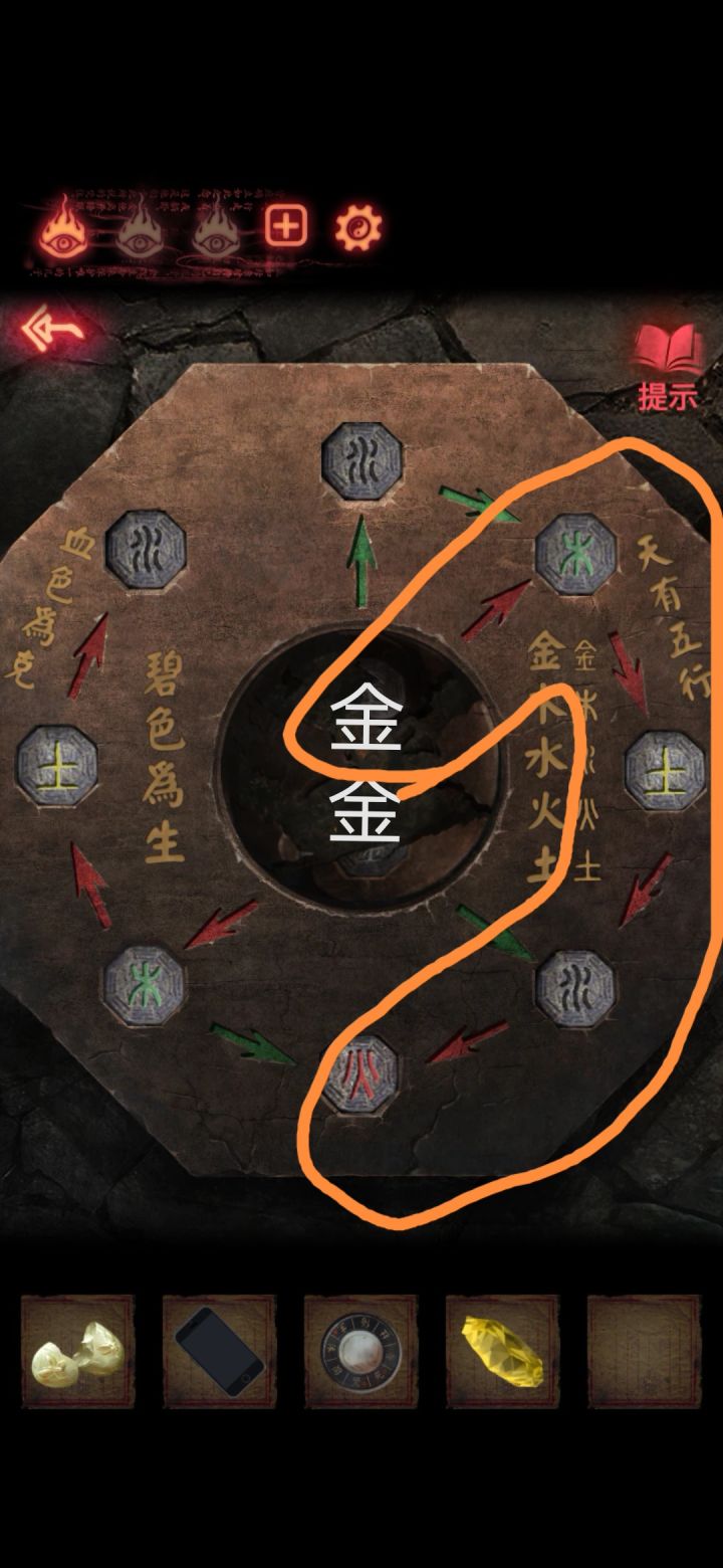 图三左边有四个连续相克关系,由于没有火可用,直接按金木水火土的顺序摆放。