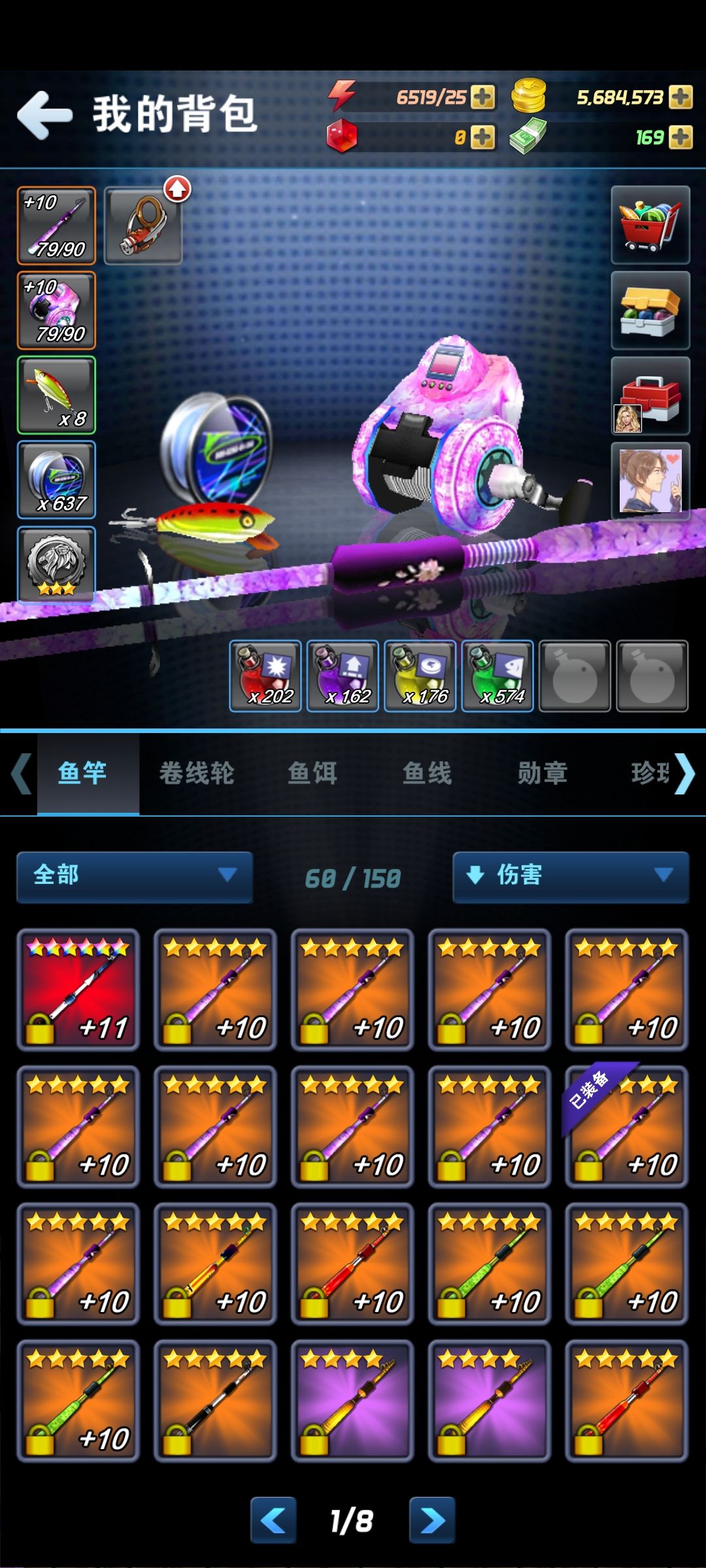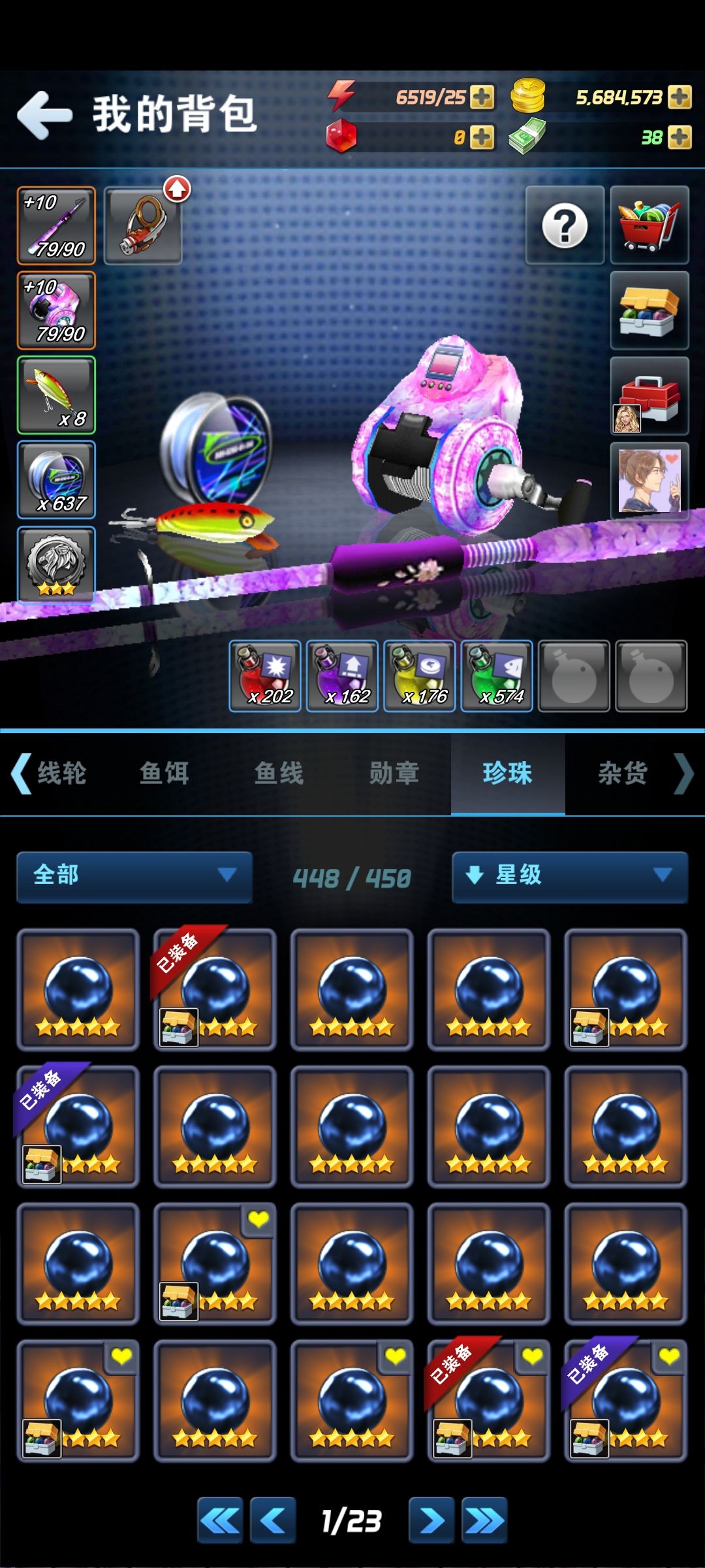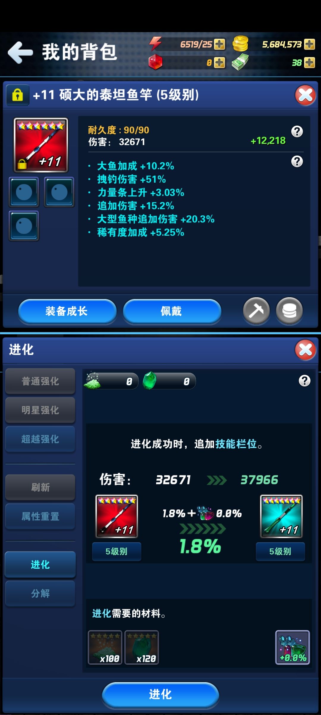 时隔两年在来看看变化吧,我也不是经常玩,六周年活动没赶上,七周年也活动没赶上,等级两年前九十多,现在109级,可以看出这两年没玩多少饰品等级平均四百级,没时间肝。前面是两张是19年的照片第一根海神鱼竿。有时候想充钱,但是想想又没充了,唉,当做休息游戏玩吧。后面图片上的基本上都要充钱还要肝。最后的七星鱼竿想都不敢想。😆😆萌新想入手的,可以试试,现在活动也好,福利也多了,有时候还会送鱼竿,基本上一百级之前送的鱼竿都可以搞定了。