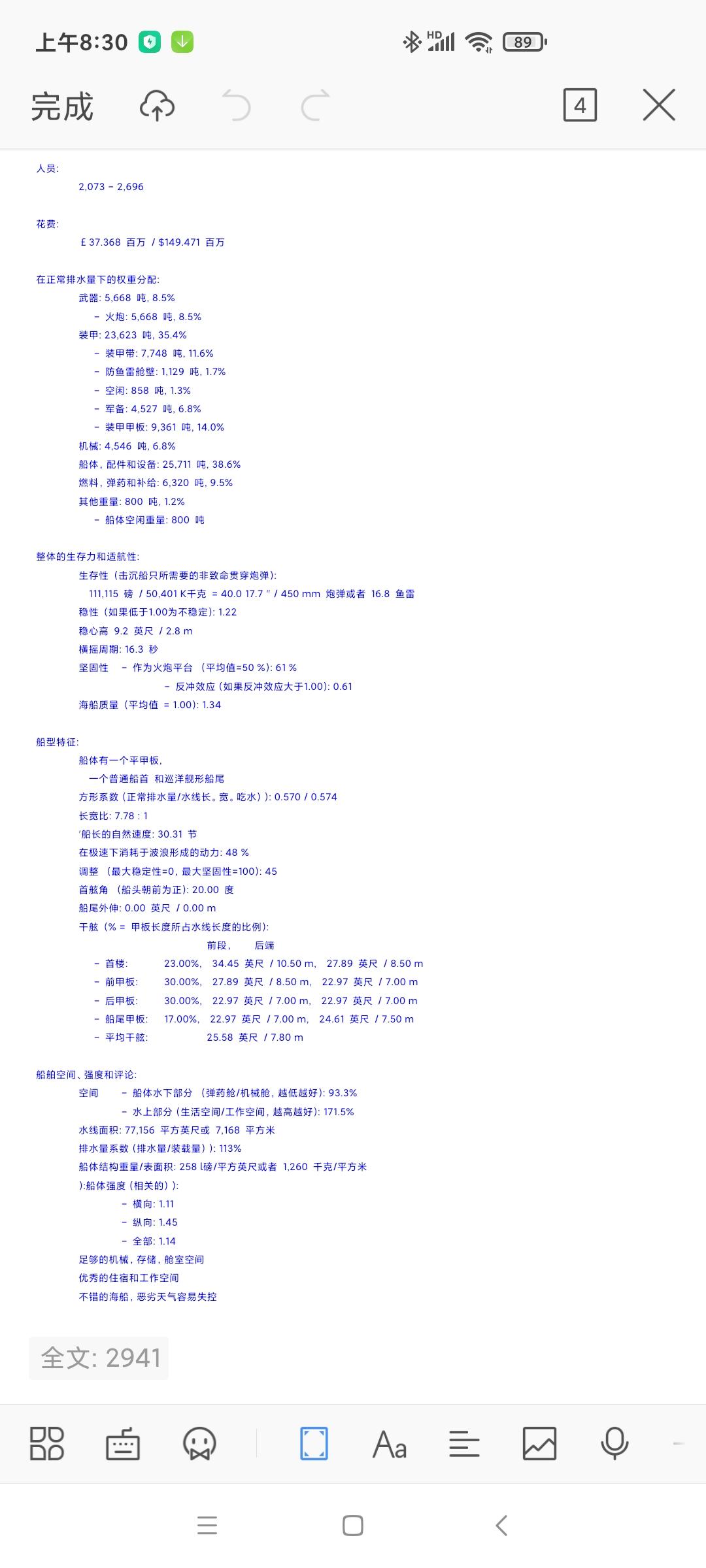 然后是装甲甲板较厚,带艏艉水线装甲的报告
