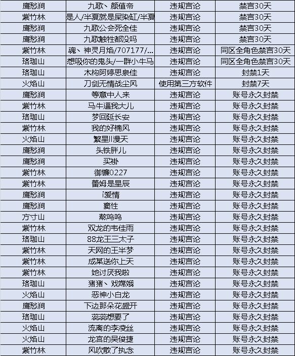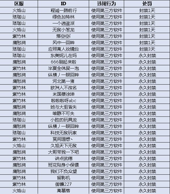 本帖将用于各位上仙举报公屏不当言论、使用第三方软件(包括但不限于除游戏安装包外的脚本、外挂、加速器、美化包等)、卡BUG等违规游戏行为,我们将对举报内容进行核实,并视情况给予禁言1天-永久禁言、封禁角色、封禁账号等惩罚。
