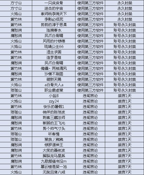 7月举报帖中的违规玩家已处理并公示,请各位上仙点击7月举报帖查看7月违规行为处理公示