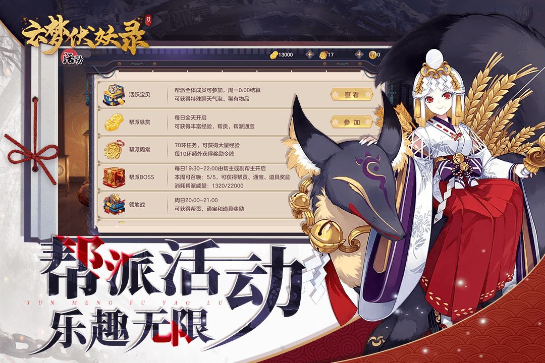 帮派会发放帮派工资,只要参与帮派活动就能领取超多绑定勾玉,白嫖的它不香吗!在帮派商店内玩家可低价购买超多神级道具,升级装备简简单单;还有帮派天赋,玩家通过天赋修炼,可大大增强战斗力;参与帮派篝火答题,还能获得抽奖次数,获得超多奖励;最香的还数帮派中有帮派红包全天发放,红包抢到手软!