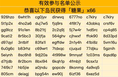 开奖啦~恭喜下列ID的肠肠获得「糖果」x66