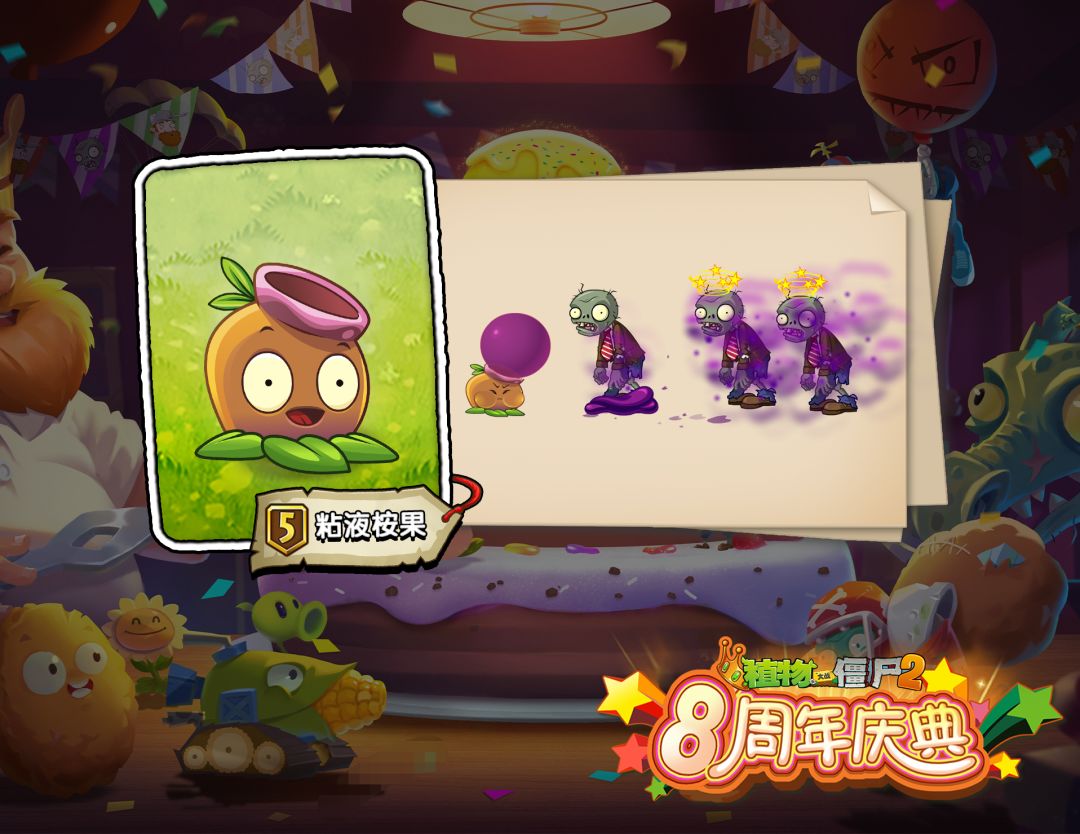 ⚪粘液桉果-剧毒泡泡,桉果师从毒影菇学成归来,吹出的泡泡糖血量更高且含有剧毒,僵尸啃食完毕后将会放出一团烟雾,对后方的僵尸们造成眩晕,为植物们的反击争取更多的时间。