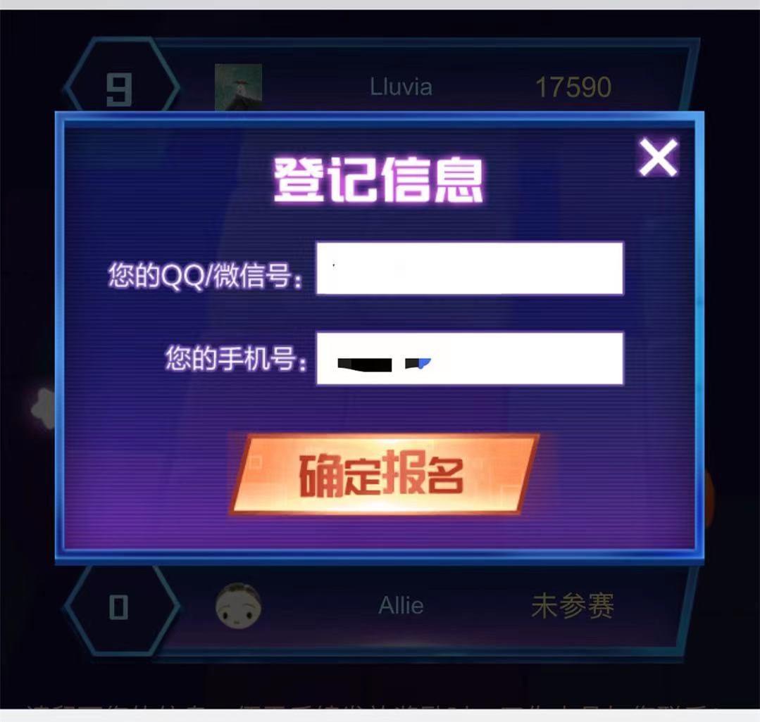 第三步:输入参赛信息,显示报名成功