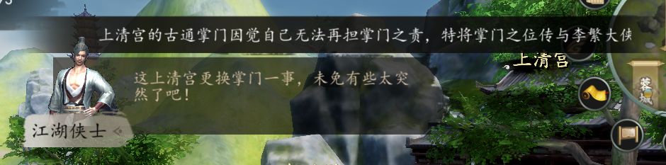 离开上清宫触发“掌门变更”传闻,上清宫求援成功。