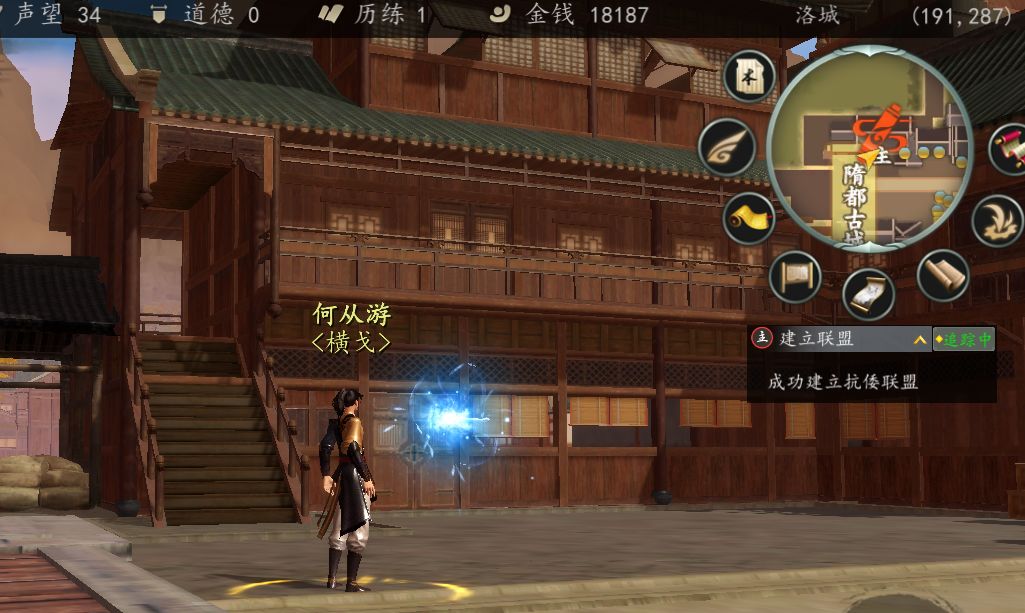 蓉城附近,遇到陈秋白,帮忙打赢战斗并邀请加入联盟。