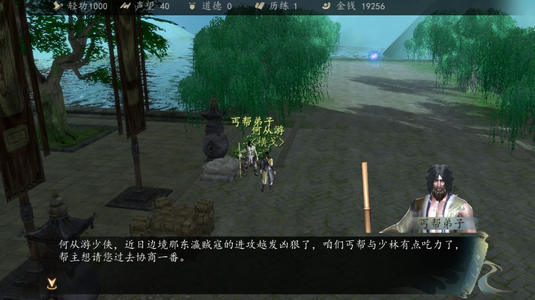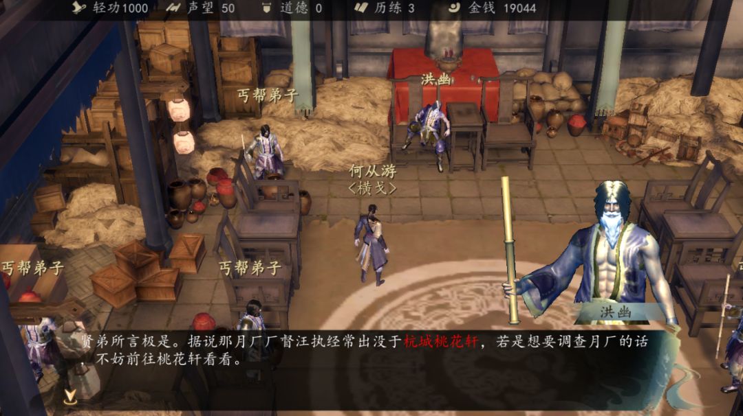 然后离开杭城,大门口会有一个丐帮弟子,对话后前往丐帮。