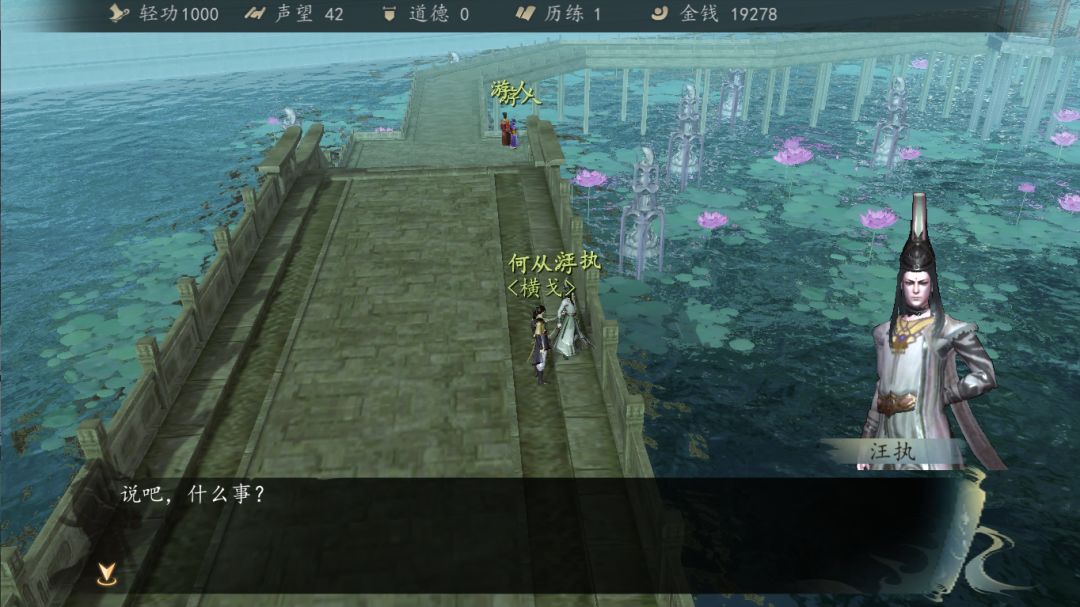 来到桃花轩,汪执离开,跟上去,看到在万松书院旁边,墨之舞与汪执对话。
