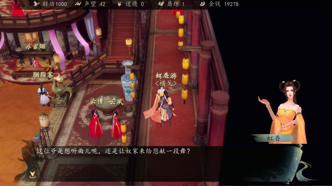 然后前往蓉城找和余福有关的艺女,在怡红楼的二楼找到虹香和她对话,得知余福是日厂的卧底。
