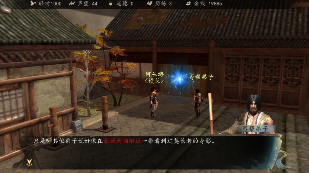 出丐帮大殿触发对话,向丐帮弟子打听莫夜下落。