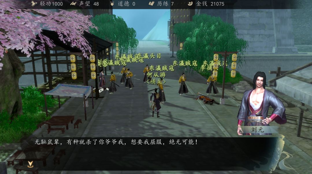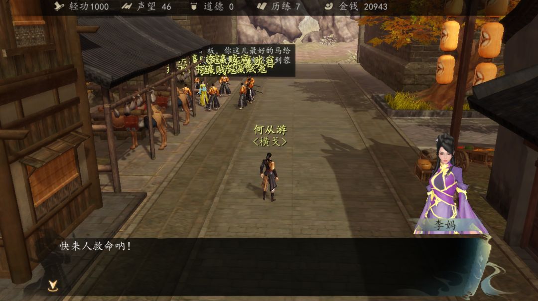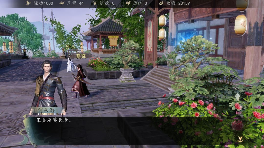 然后进去豪宅,找到一本抗倭人员的名单,拿到之后出门遇到莫夜,被诬陷是奸细,然后洪幽出现对话,被莫夜打伤,莫夜承认是奸细,打赢之后继续对话。