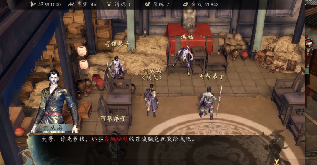 到丐帮大殿把东瀛人的作战计划表给洪幽,然后丐帮弟子来报,东瀛人大举入侵,除了边境,其他地方也被进攻了,丐帮人手不够,我们帮忙去剿灭各地的贼寇。