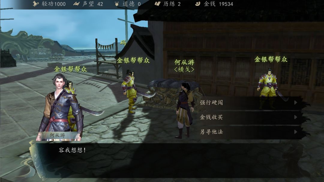 到码头附近会被金银帮的人拦住,出现三个选项