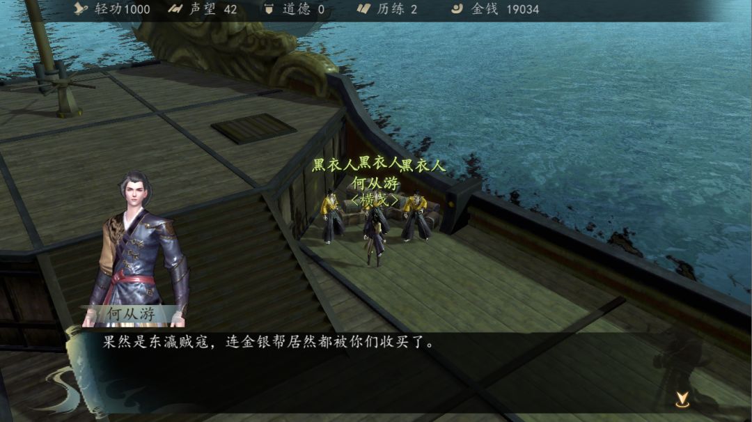 离开码头时会被段百万堵住,打过之后问话,得知有许多的倭寇潜伏在各大门派,准备里应外合。
