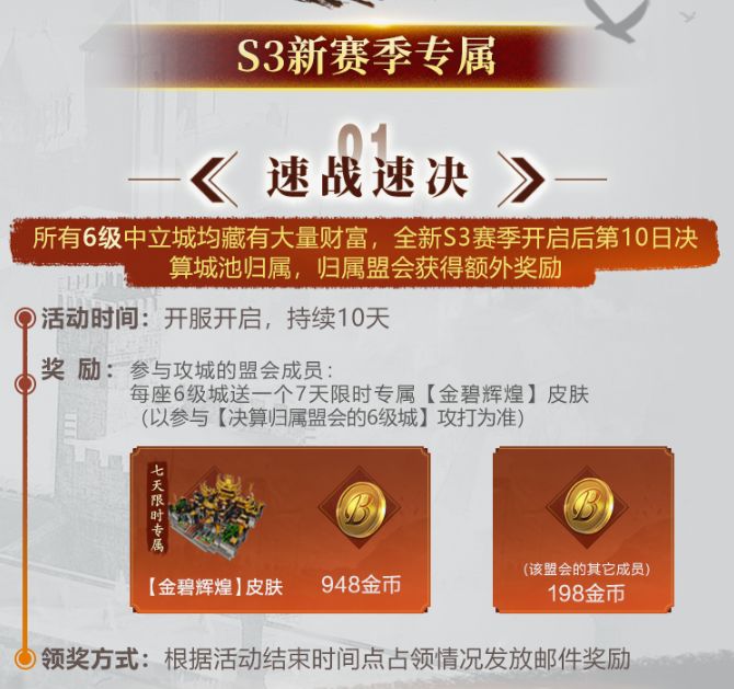 并利用活动奖励,帮助同盟尽早建立起铺路组、攻城组、主力组等重要分支