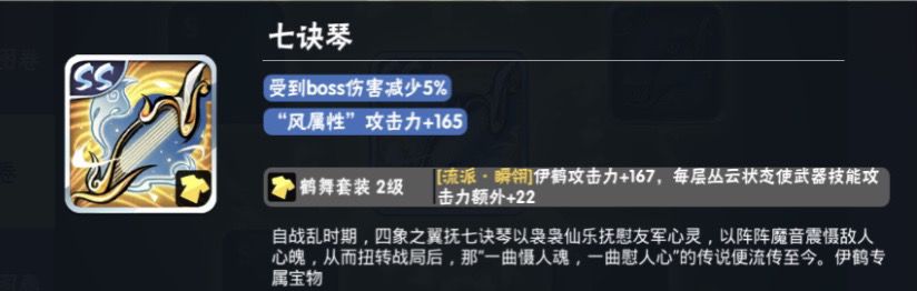 增加风系伤害,如果你是双风刀(或双风武)伊鹤,推荐此宝物,因为当前版本的伤害分布飞镖球整体占比偏少(无双图占比略高一些);