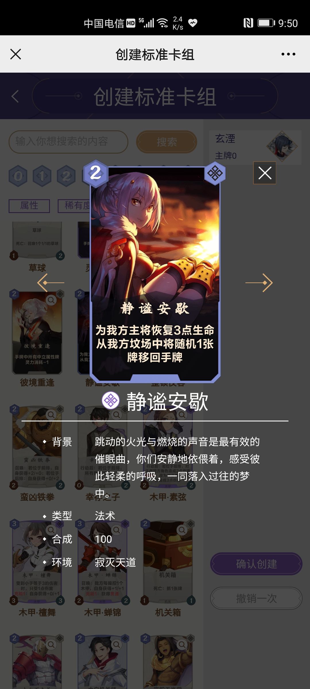 静谧安歇是张好牌,2费,给主将回3血,还能从坟场捞回一张牌,妥妥的实用神卡,玩慢速卡组的伙伴前期如果用狩猎献礼,繁世猎场来抗快,配合静谧安歇,就可以稳定回收这两张卡,抗快更有保证,另外配合木系的圣月当空回收,那更是保场的二重保险。繁世猎场这张卡非常好用双打4抗快神卡不解释😉然后一心同体这张卡两个部署+4+4不是关键,关键是后面的那句免疫控制,对你没有看错,是免疫一切控制,不光是指法术,亲测,打了这张卡的部署,贾祸,烟露都牛不走。所以这一张卡的收益相当于废掉了所有的ntr,包括煌璃大招,在新版本风系崛起,加上加入了魔仙烟露这样的下卡稳定ntr一个部署,这是非常超值的。注意这张卡不是魔免,只是免疫控制。