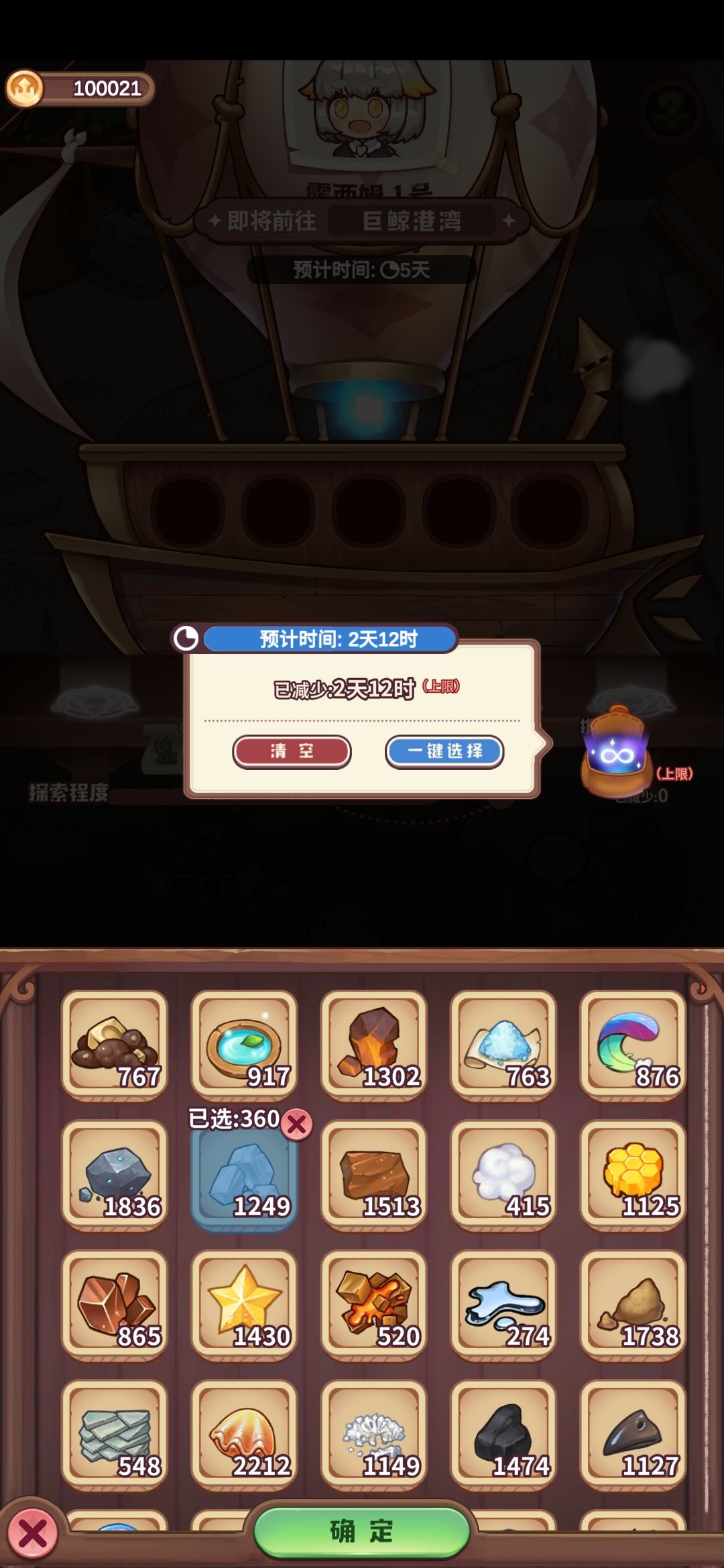 3.飞艇要5天怎么办?右下角可以带物品加速,最多加速一半时间(也就是2天12小时)