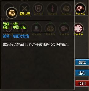 混沌场:每次触发反弹时,PVP免疫提升10%,持续5轮