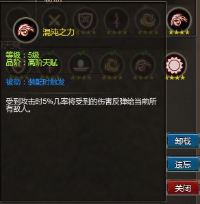 混沌之力:受到攻击时5%几率将受到的伤害反弹给当前所有敌人