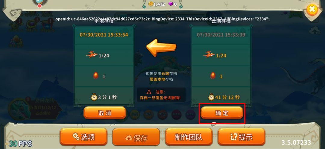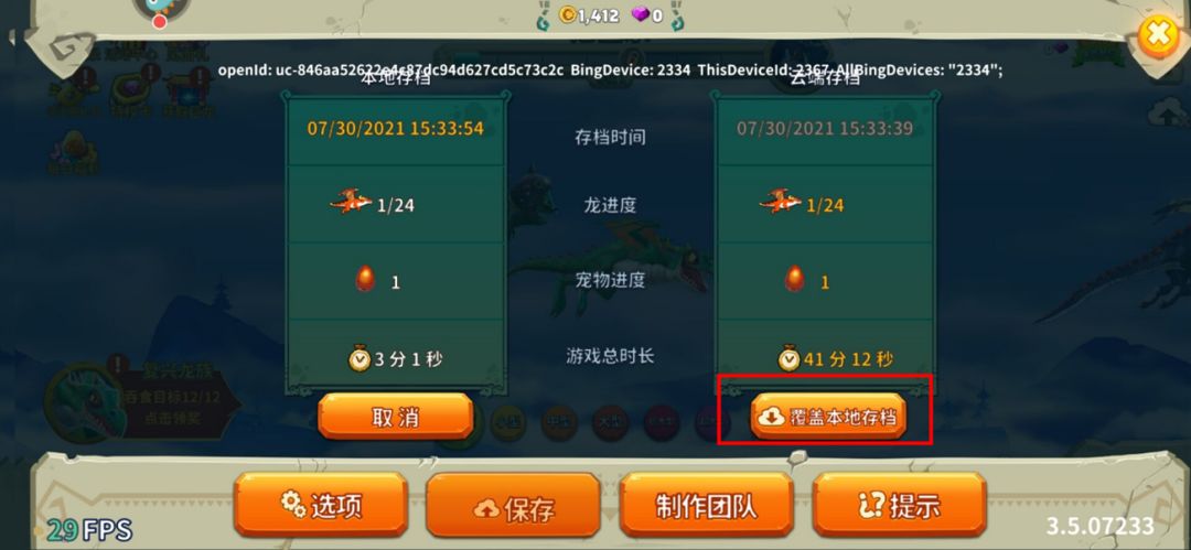2. 根据指引点击进入此页面后,点击覆盖本地存档。