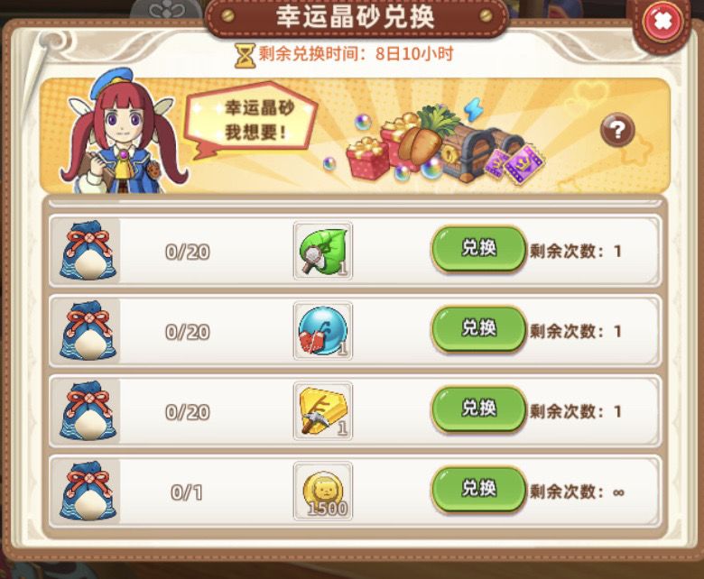 晶砂可兑换奖励时间:8月5日5点—8月14日5点