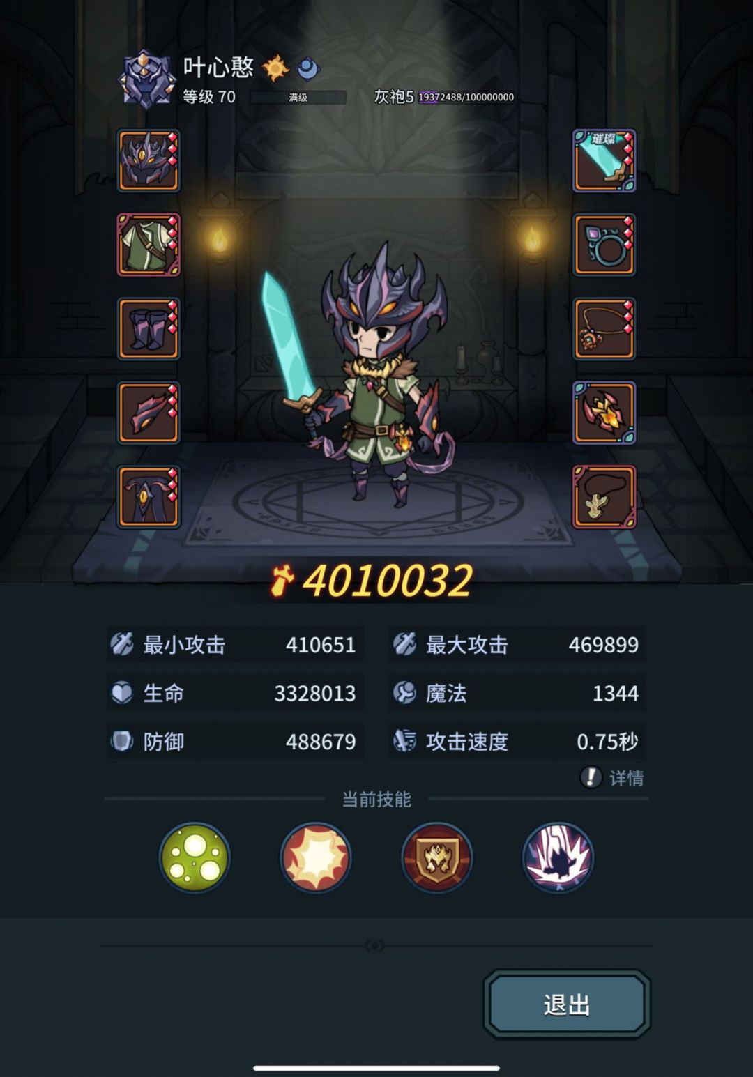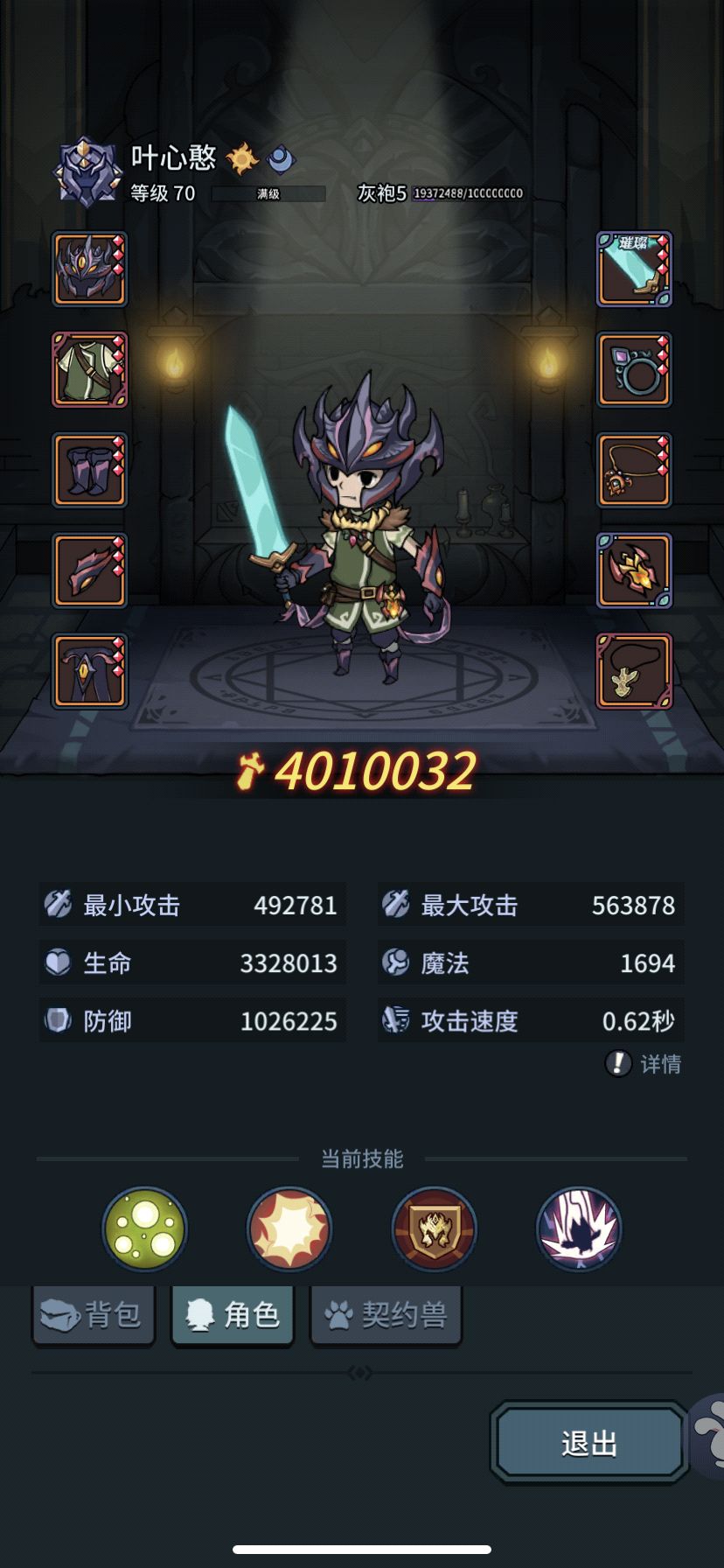 武器:月光大剑,永恒生命之戒,执法者之链
