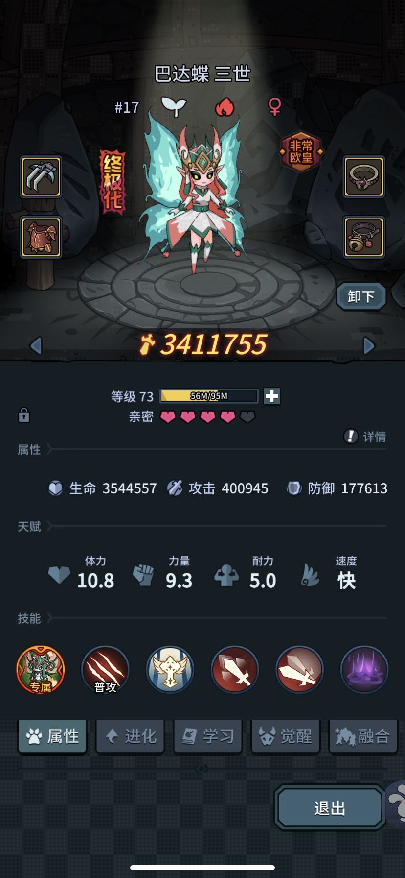2.通常带蝴蝶需要的是血量,所以需要给蝴蝶打生命2来加人物血量,大概血量基本在330W以及以上比较稳一些,关键是起手打好了,狂暴+治疗,抗住前面几秒boss的跳劈之后,没下半血,就离过不远了,3觉的蝴蝶回血已经到了基本稳定的情况,需要重点注意的是:boss的反伤buff的时候,不要放重击,可能出个贯穿导致反伤伤害量过大从而崩盘。