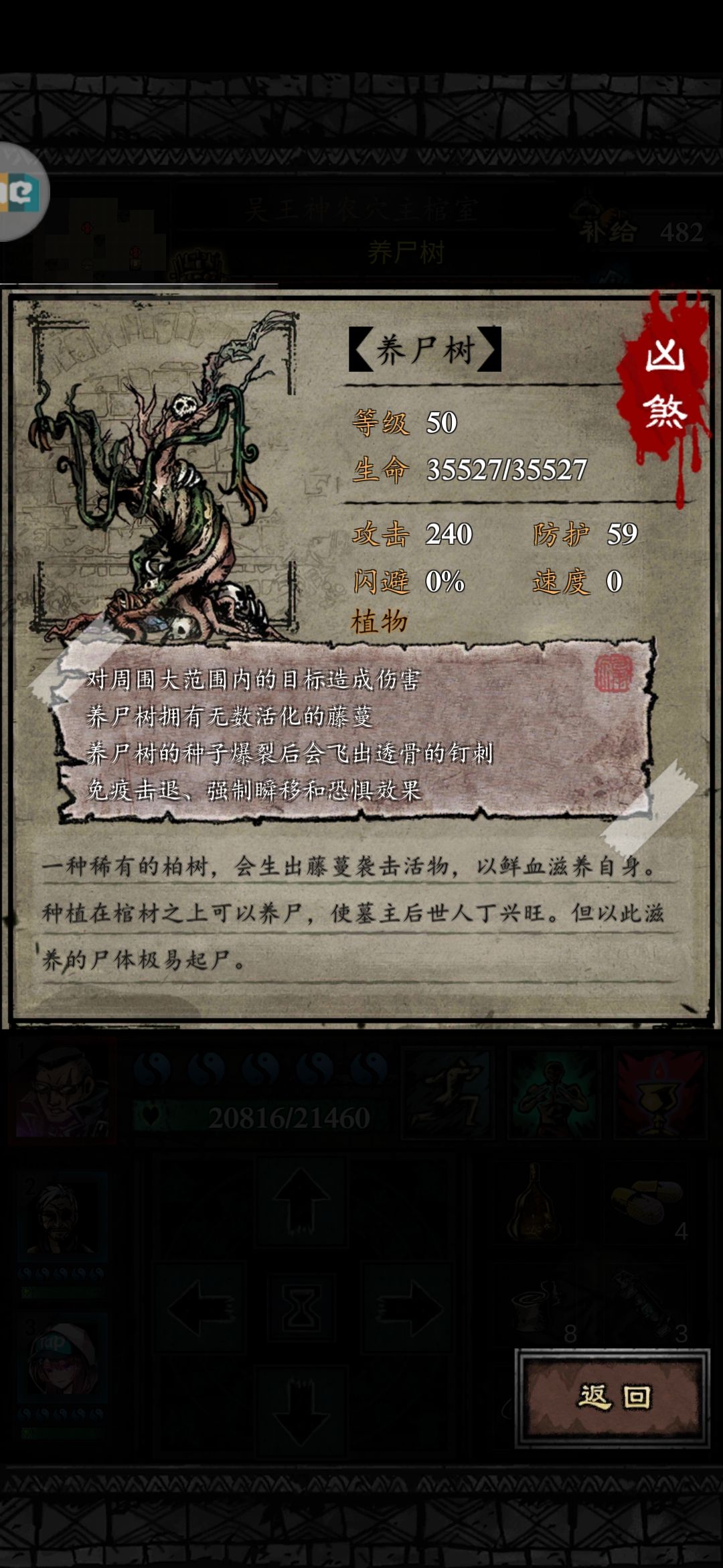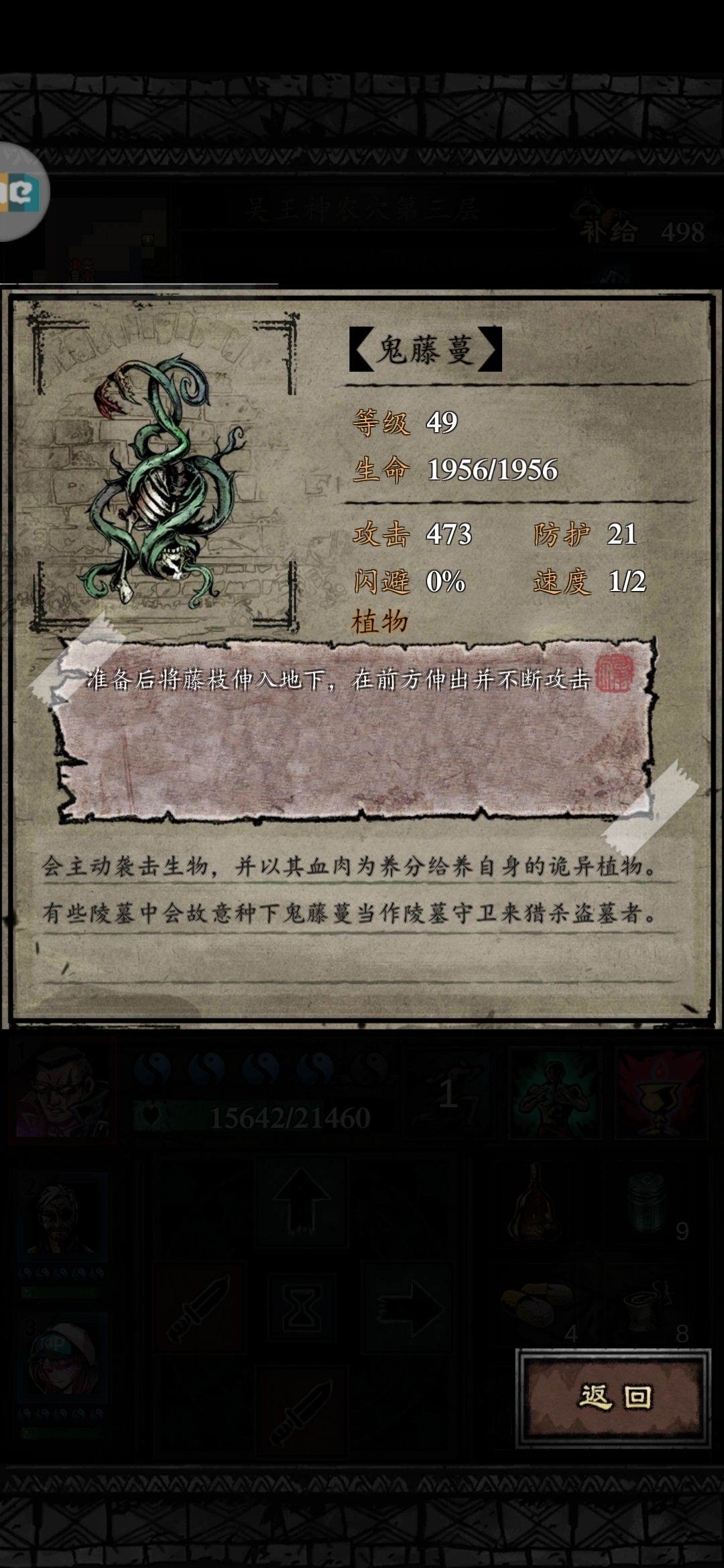 这个大家不陌生吧,开篇让大家带免控或潜行角色辅助就是因为它技能有击飞效果,还有定身效果,相当难以接近,还会召唤上面的个鬼蔓藤。新手元良很大几率未能接近此怪已损伤大半,导致过关失败。