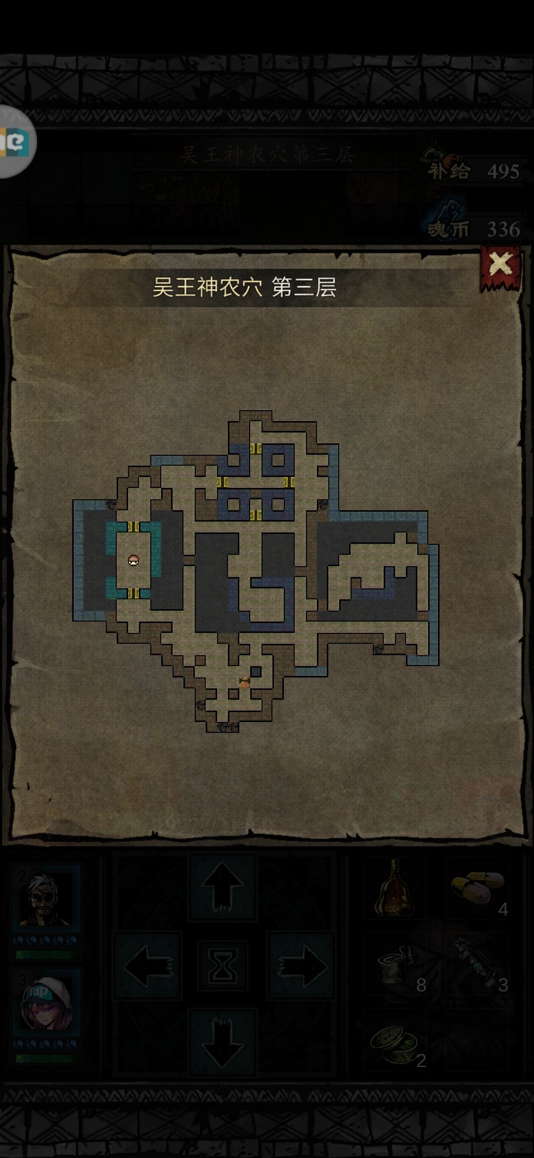 但由于BOSS技能问题,建议选择有免控技能或潜行技能的角色。下斗准备老三样最稳定,血药,蓝药,粮食。