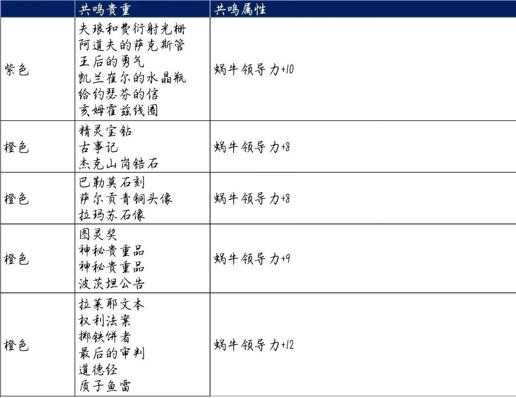 本小节所述贵重属性均摘取领导力部分