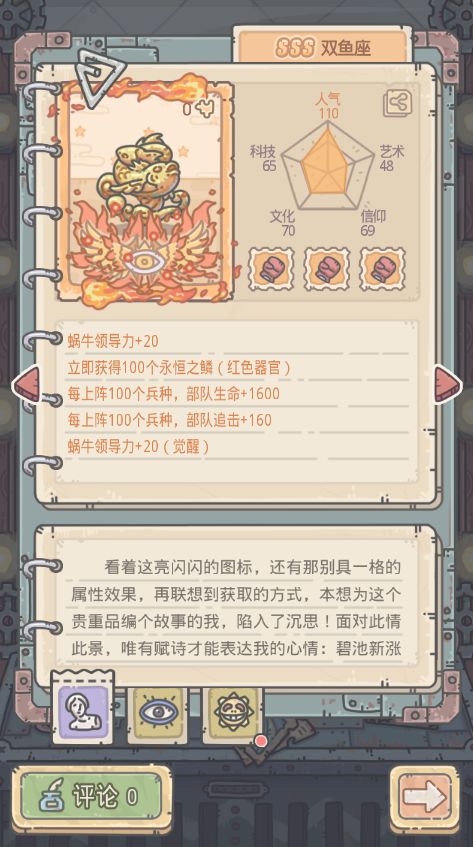 立即获得100个永恒之鳞(红色器官);蜗牛领导力+20