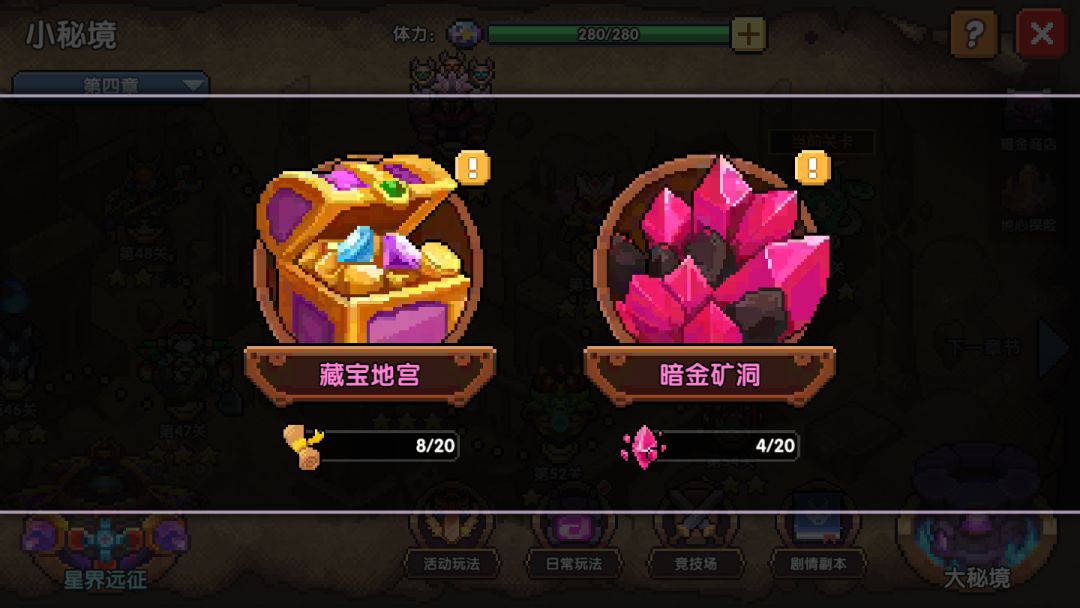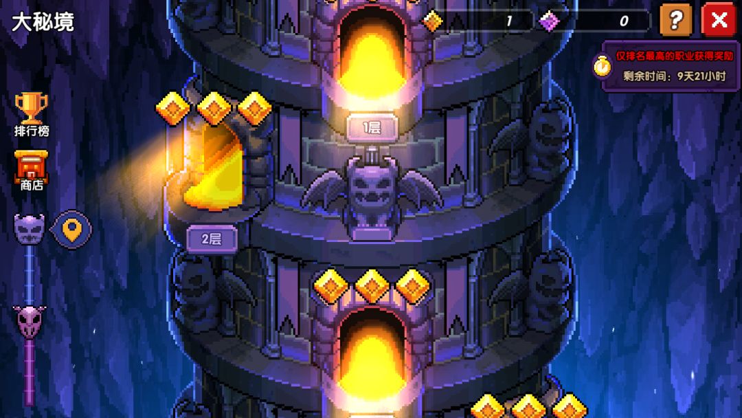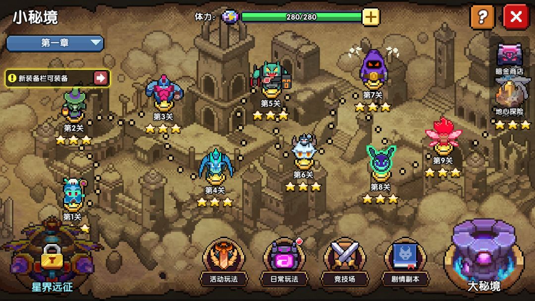 【勇者评级与大小秘境】在选择完自己心仪的流派之后,开始进入到最重要的前期发育环节。我的勇者内前期最重要的莫过于勇者评级,它能决定你的进度上限,它在我的勇者2.0更新后,原先的魔界岛被糅合到了小秘境内,大秘境则是作为挑战关卡,因为小秘境关数限制和勇者评级有关所以我们前期要做的就是优先完成等阶任务提升勇者评级。