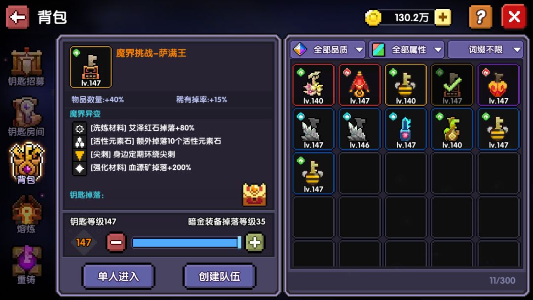 自己的钥匙则是洗出【活性元素石】、【血源矿】、【随机钥匙】词条(超越钥匙请洗碎片加成)后拿去和公会成员一同分享,有助于促进你和会内成员的友谊噢!注意创建房间时打开公会组队而不是世界组队!