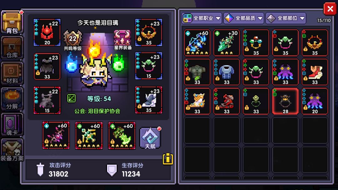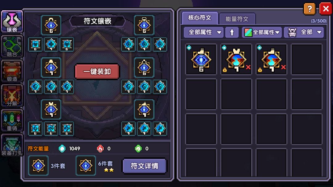 当你到达B+勇者评级时你就会开启符文页面,这绝对是这个游戏的重中之重,而能量的积累又影响到你的输出,首先你要做的是做一套尽量同色的装备类似于上图,然后根据自己选择的流派攻略制作大符文以及小符文。一定要在流派攻略里看清楚再进行制作!小心走了歪路!