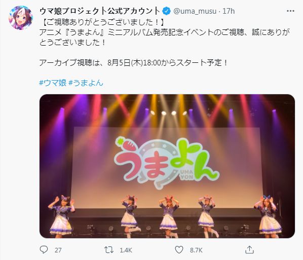 赛马娘日文名为“ウマ娘”,大家一起来养马,赞。