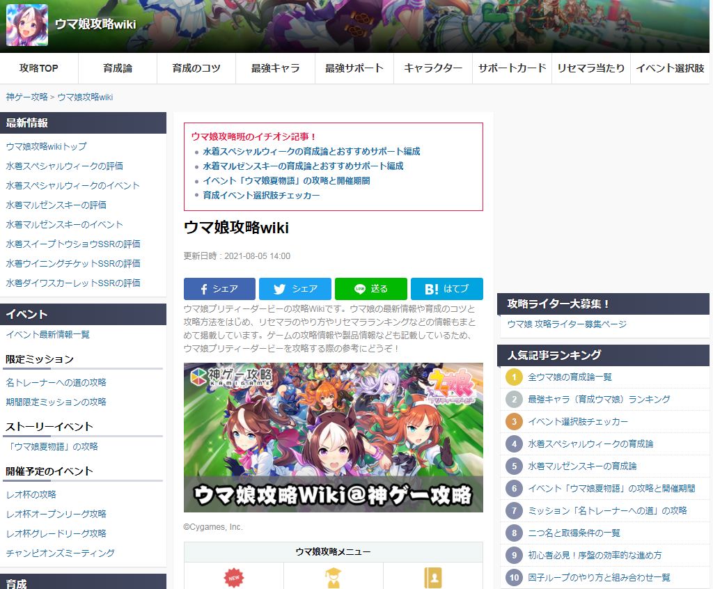 推荐一些自己习惯用的日文wiki(搜“ウマ娘 Wiki”就能找到)