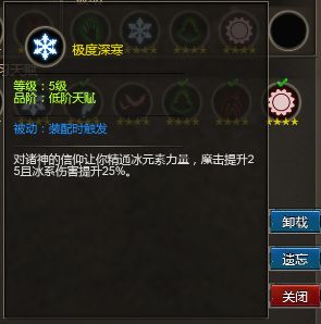 极度深寒:提升魔击25点,提升冰元素伤害提升25%