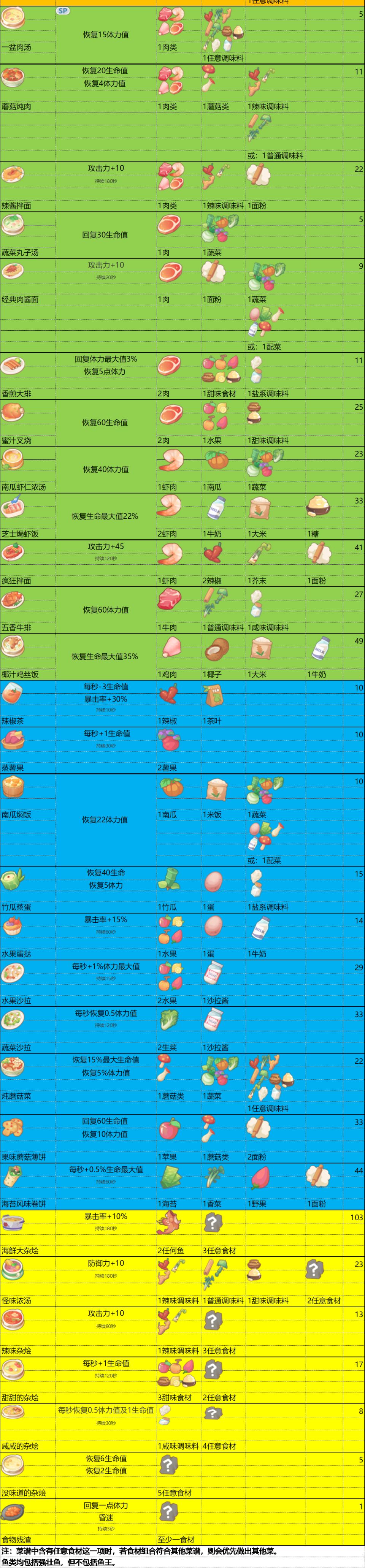 菜谱(ps:转自百度贴吧)